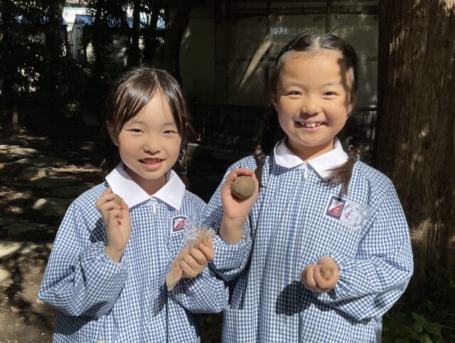 また、子どもたちの間では「どろだんごづくり」への熱も続いています。水を加え、砂をかけ、何度も磨き上げるうちに、つるつるに光る“マイどろだんご”。手の中で生まれる小さな輝きに、子どもたちは誇らしげな笑顔を見せてくれます。