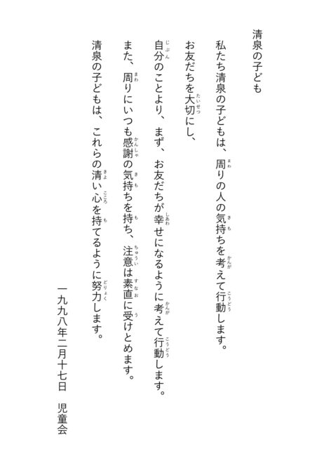 さて皆さんは「お友だちを大切に」「誠実に」過ごせていますか。振り返ってみましょう。