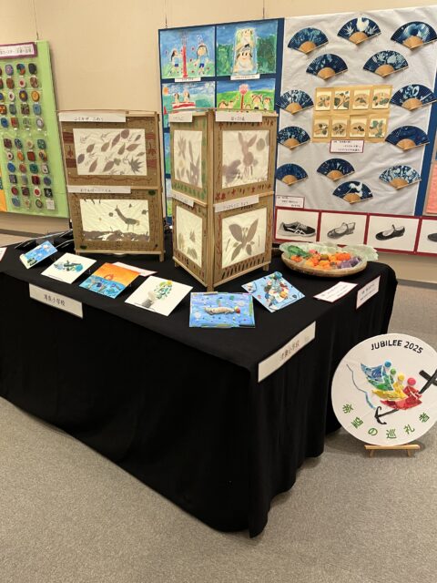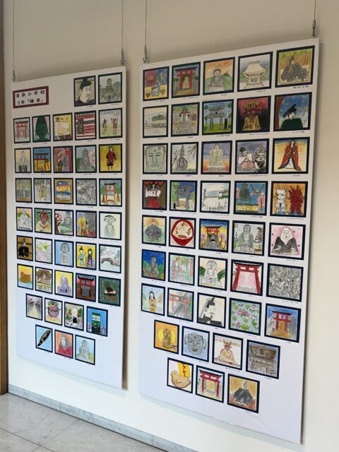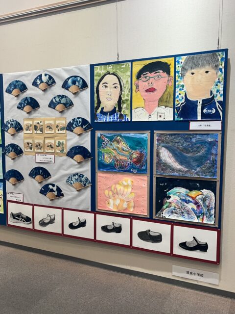 今年度は学校ブースに1・2年生、4・5・6年生の作品が展示され、企画展示ブースには3年生全員の「鎌倉」の絵が展示されました。