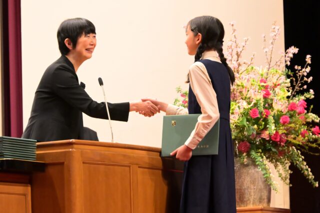 さて、いつもなら講堂内には6学年が座っていますが、今日は6年生がいません。そうです、昨日卒業されました。4年生、5年生が学校の代表として卒業式に出席しました。卒業証書を受け取るときの79期6年生は、一人ひとり清泉小学校の卒業生として胸を張って、とても立派でした。