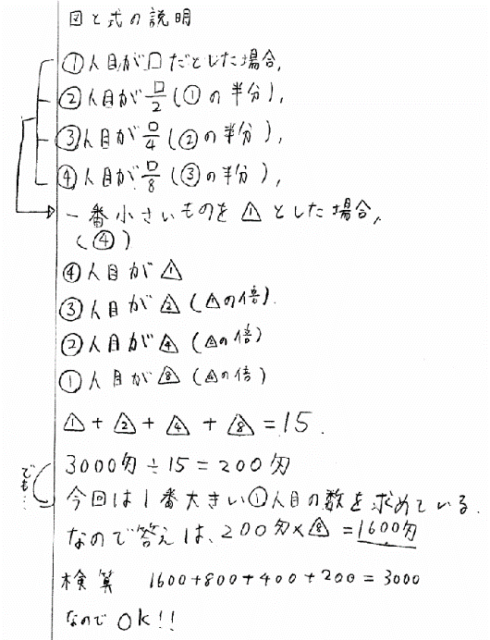 本当に嬉しいことで、1年生から積み上げてきた確かな計算力を土台とする基礎基本の上に、自由な思考を積み上げていく本校の算数教育の結実とも言えるでしょう。