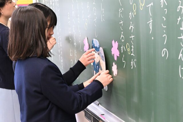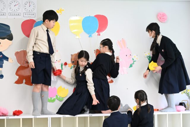 この日は朝早くから、6年生が総出で1年生をお迎えするお教室をきれいに飾り付けてくれました。