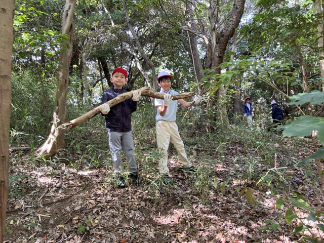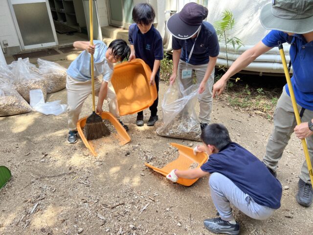 2年生が三浦自然教室でウッドチップ作りなどをしました。