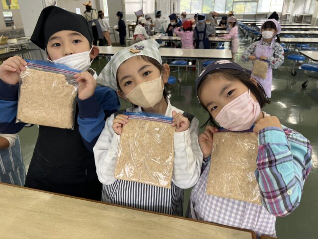 自然教室のダイコンが入ったお味噌汁は、格別においしかったようです。