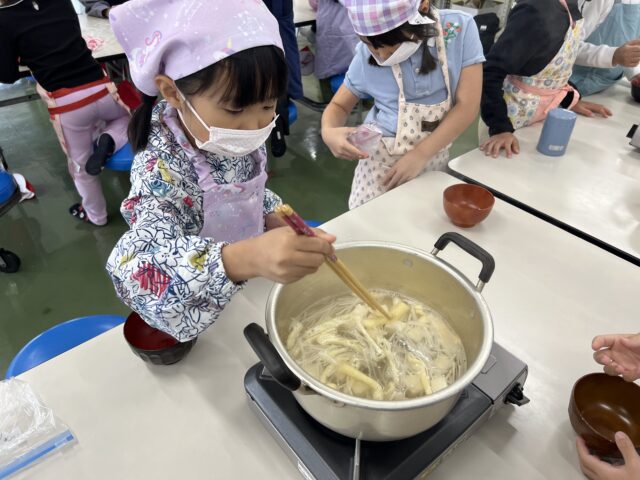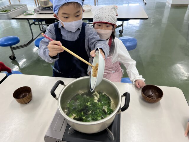 味噌づくりの後は、お味噌汁を作りました。
