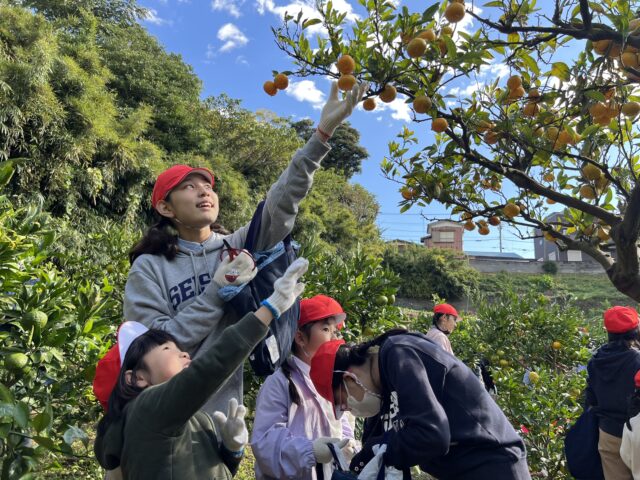 1年生と6年生が一緒に三浦自然教室でみかん狩りをしました。