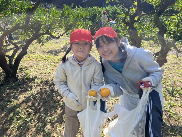 11月10日(月)に1年生と6年生が三浦自然教室に行きました。1年生と6年生でペアを組んで、ミカン狩りなどを行いました。