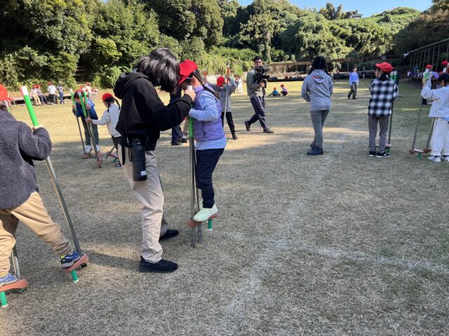 自由時間には、一緒に生き物探しをしたり、迷いの森を探検したり、竹馬の練習をしたりしていました。