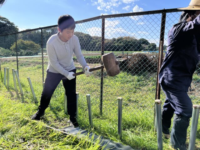 1年生が帰った後、6年生は、卒業制作②として、土留めを作り、駐車場の整備をしました。