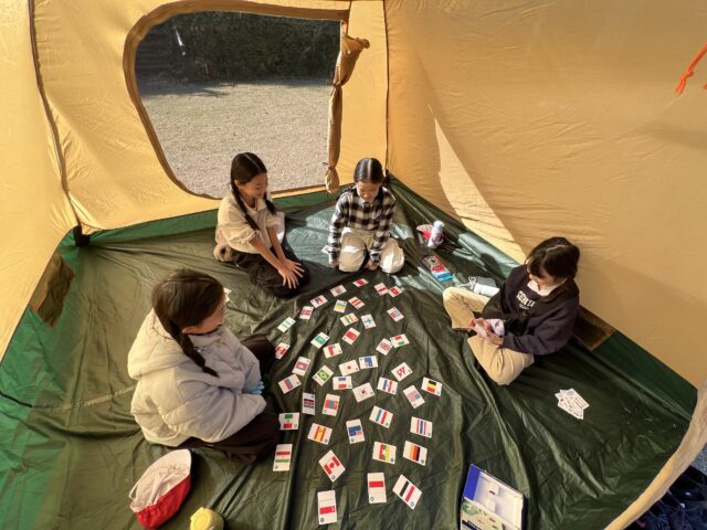 無事みんなでテントを張った後は、テントの中でくつろいだり、ボードゲームをしたり、お話ししたりと、お友達との楽しい時間を過ごしました。