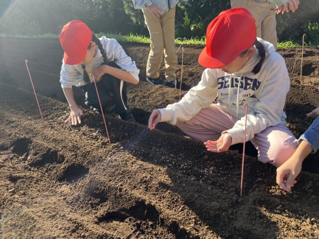 小麦の種まきも行いました。来月には、麦踏みを行う予定です。これからの成長が楽しみです。