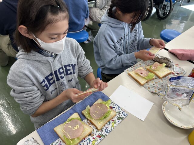 お昼はカートンドッグとサンドイッチを作っていただきました。
