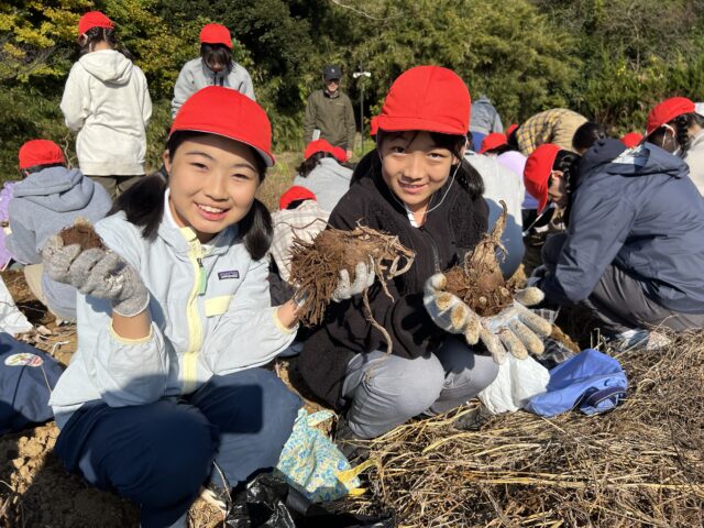 11月27日(木)に6年生が三浦自然教室に行きました。サトイモの収穫と火おこし、焼きサトイモ作りを行いました。