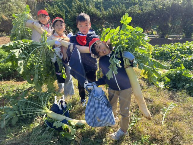 2年生三浦自然教室でダイコンの収穫などをしました。