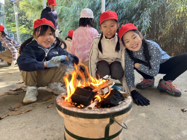 収穫の後は、火おこしをしてダイコンのおでんを作りました。