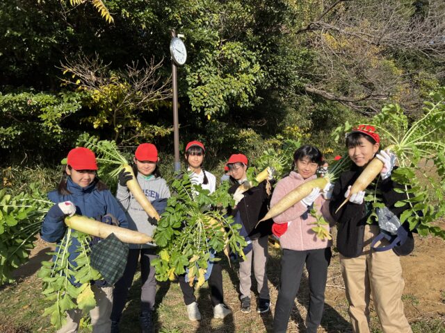 12月10日(水)に6年生が三浦自然教室に行き、ダイコンの収穫とおでんづくり、卒業制作、労作などをしました。