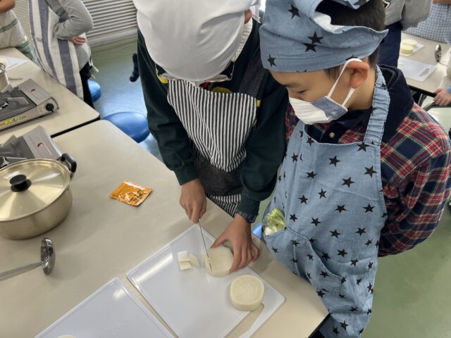 ダイコンの皮むきも、自分たちで包丁を使って行いました。