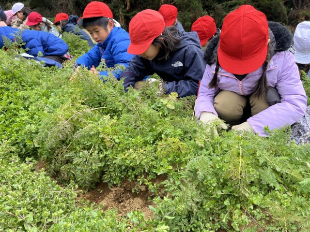 1年生が三浦自然教室でニンジンの収穫などをしました。