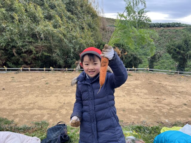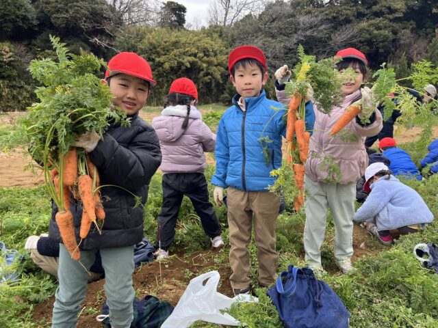 1月21日(水)に1年生が三浦自然教室に行き、ニンジンの収穫などをしました。