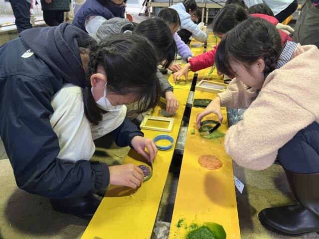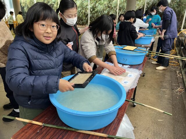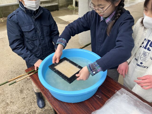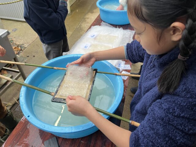 4年生が三浦キャンパスで紙すきなどをしました。