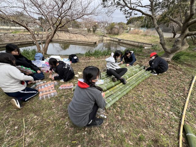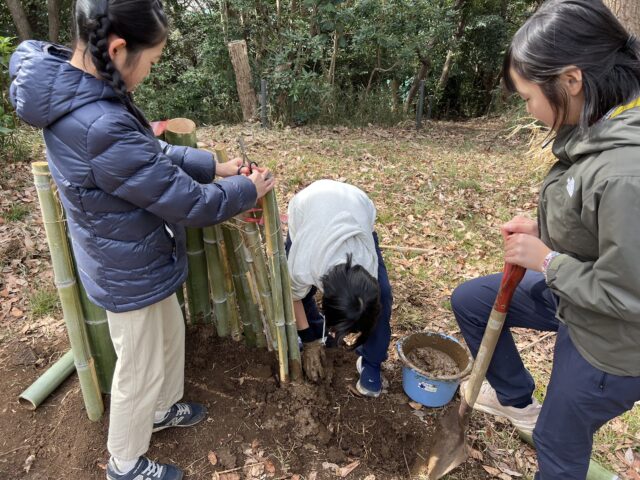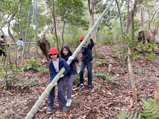 材料に使った竹などは、自分たちで伐採して、森からとってきたものを使いました。