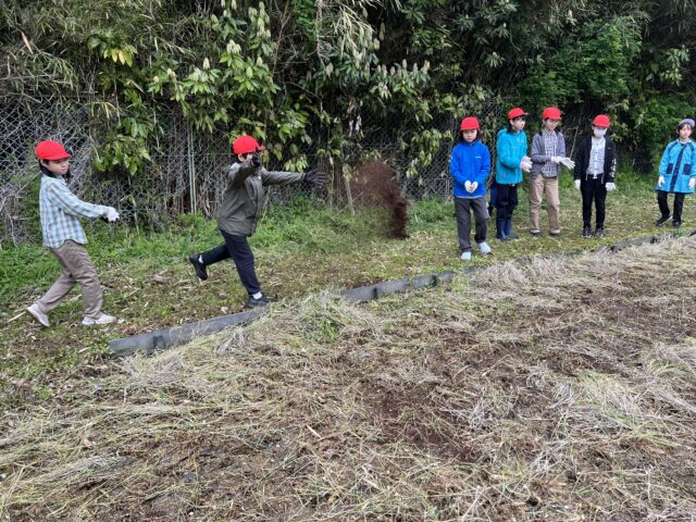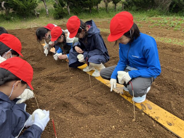 5年生が三浦キャンパスでトウモロコシの種まきなどをしました。