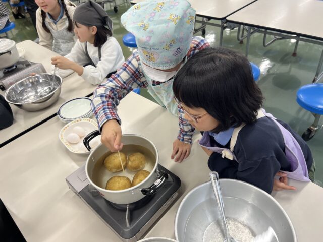 火加減を調節したり、ゆで具合を竹串で確認したりと、子どもたちは張り切って調理していました。