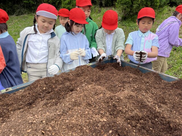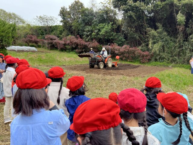 馬糞堆肥やもみ殻の匂いを嗅いだり、トラクターで耕している様子を見学したりと、初めて経験したことがたくさんあり、子どもたちは嬉しそうな様子でした。